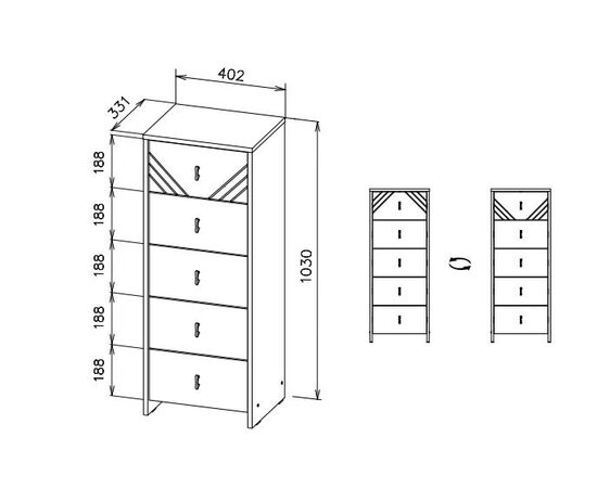 Комод NN Мебель (МС Байкал К) Дуб Золотой/Графит, 5 ящиков