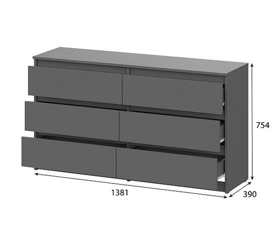 Комод NN Мебель (МС Денвер К) Серия 2 Графит серый, 6 ящ. (1,38м)