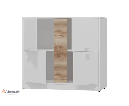 Комод широкий (с дверками) Scandica Vendela 4 (белый гладкий шелк/ дуб сакраменто)