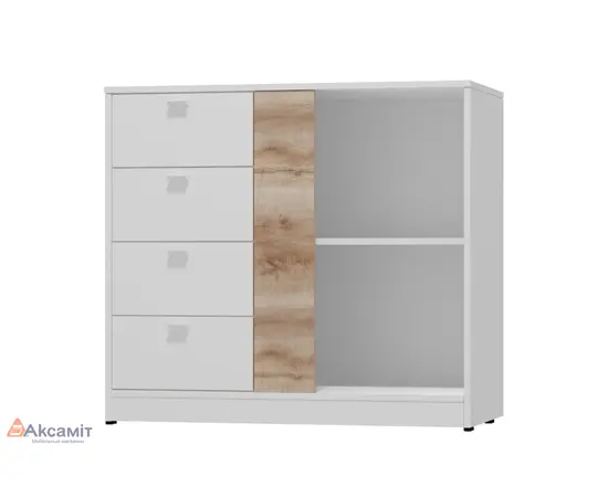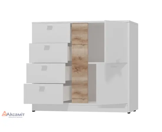 Комод широкий (с ящиками) Scandica Vendela 5 (белый гладкий шелк/ дуб сакраменто)