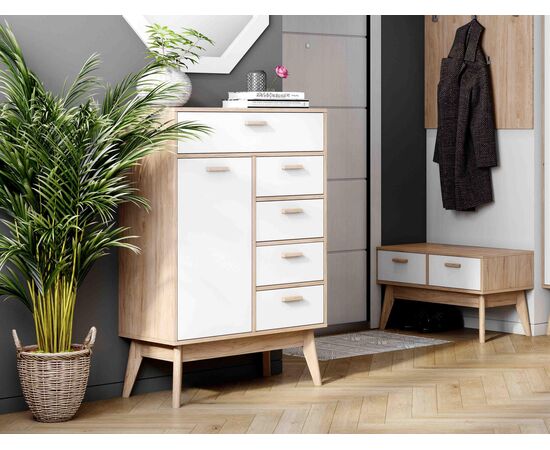 Тумба Калгари высокий (дуб натуральный светлый/белый матовый)
