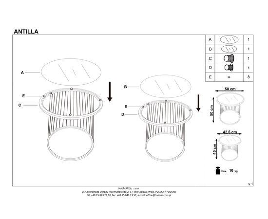 Комплект ANTILLA (2 стола журнальных) дымчатый/черный, 50/50 и 42/45