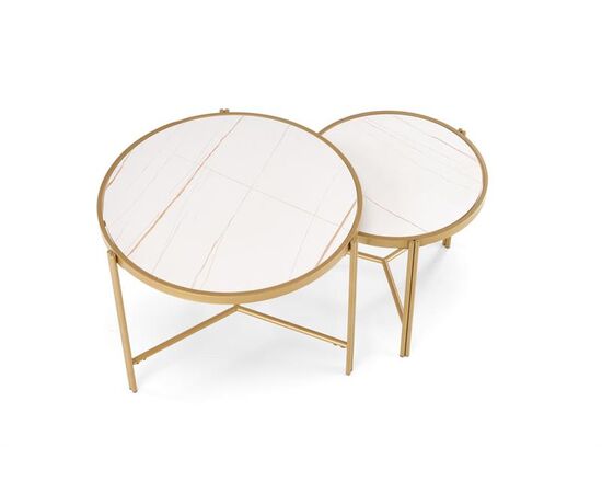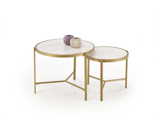 Комплект HALMAR FATIMA (2 стола журнальных) белый мрамор/золотой