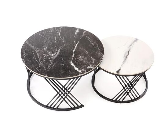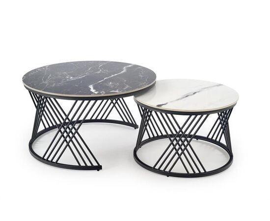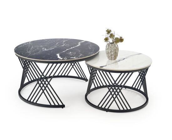 Комплект HALMAR FLAMINGO (2 стола журнальных) черный мрамор/белый мрамор/черный