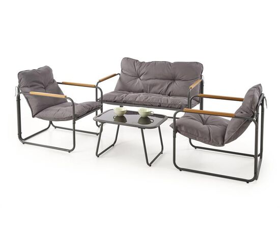 Комплект HALMAR HUDSON (диван + 2 кресла + стол журнальный) серый/коричневый