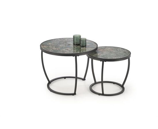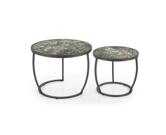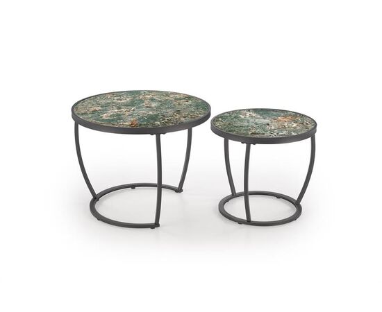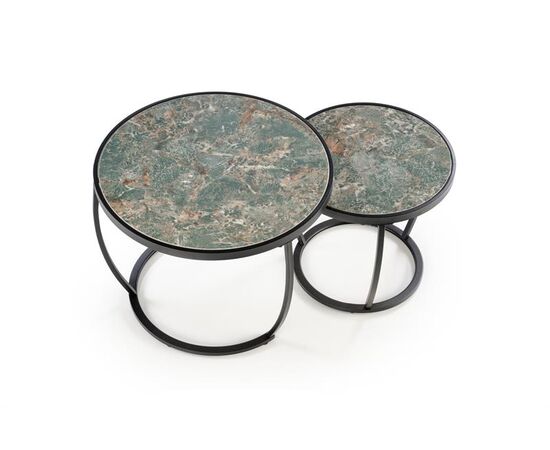 Комплект HALMAR INES (2 стола журнальных) зеленый мрамор/черный