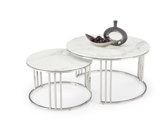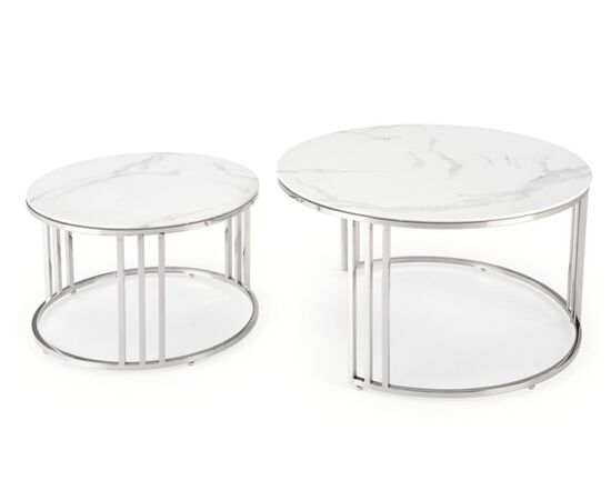 Комплект HALMAR MERCURY 2 (2 стола журнальных) белый мрамор/серебристый