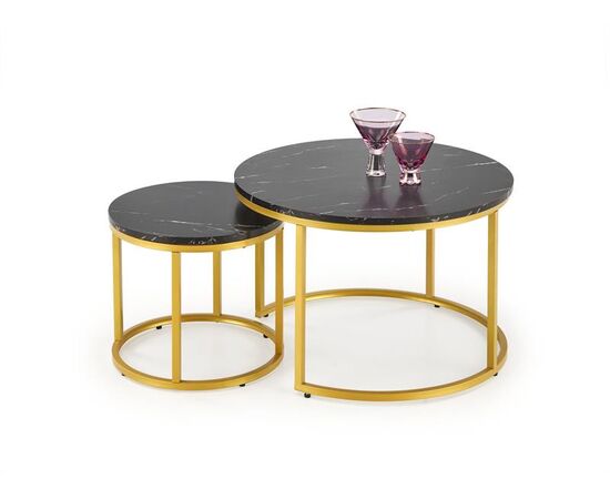 Комплект HALMAR PAOLA (2 стола журнальных) черный мрамор/золотой