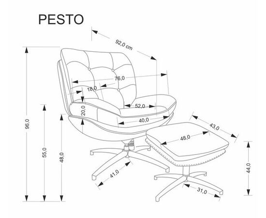 Комплект HALMAR PESTO (кресло+подставка для ног) серый