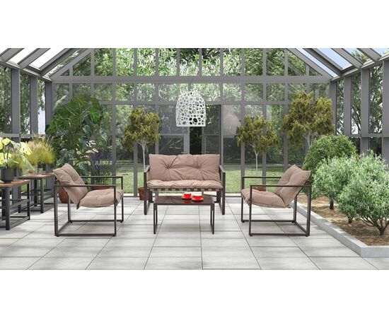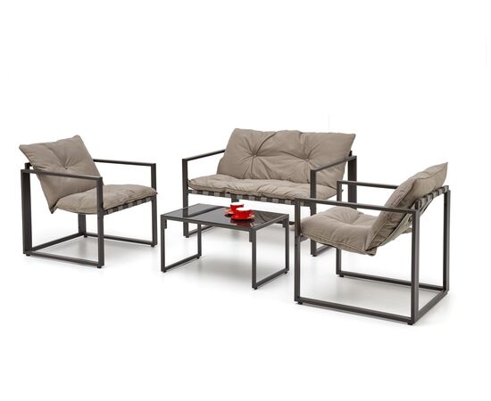 Комплект HALMAR SHARK (софа + 2 кресла + стол журнальный) черный/капучино