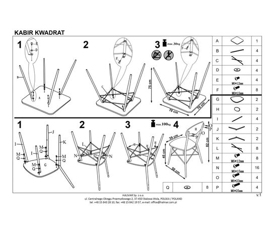 Комплект KABIR (стол + 2 стула) дуб сан ремо/черный 70/70/75