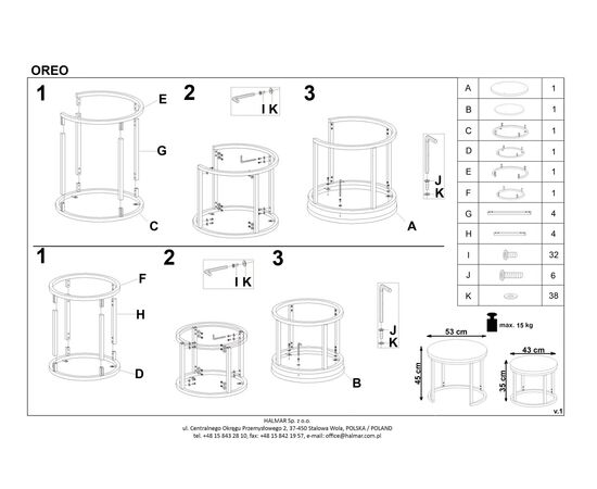 размеры столов (Ш/Г/В): 53/53/45 см и 43/43/35 см.