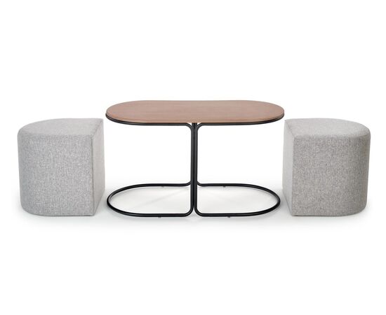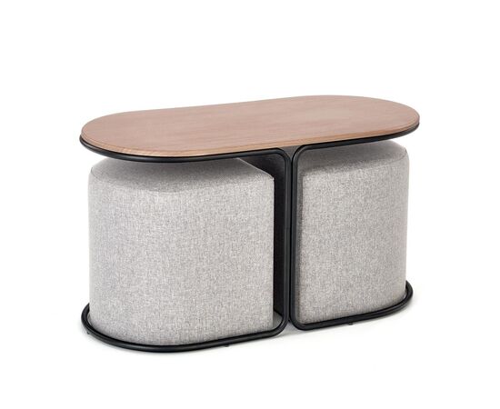 Комплект PAMPA (стол журнальный + 2 пуфа) орех/черный, серый