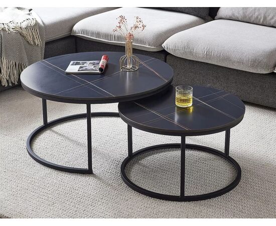 Комплект SIGNAL FERRANTE D (2 стола журнальных) черный мрамор/черный мат