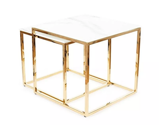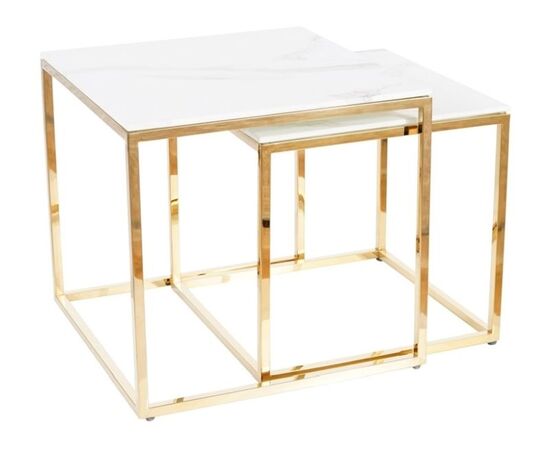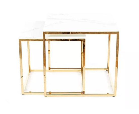Комплект SIGNAL GLORIA (2 стола журнальных) эффект белого мрамора/золотой