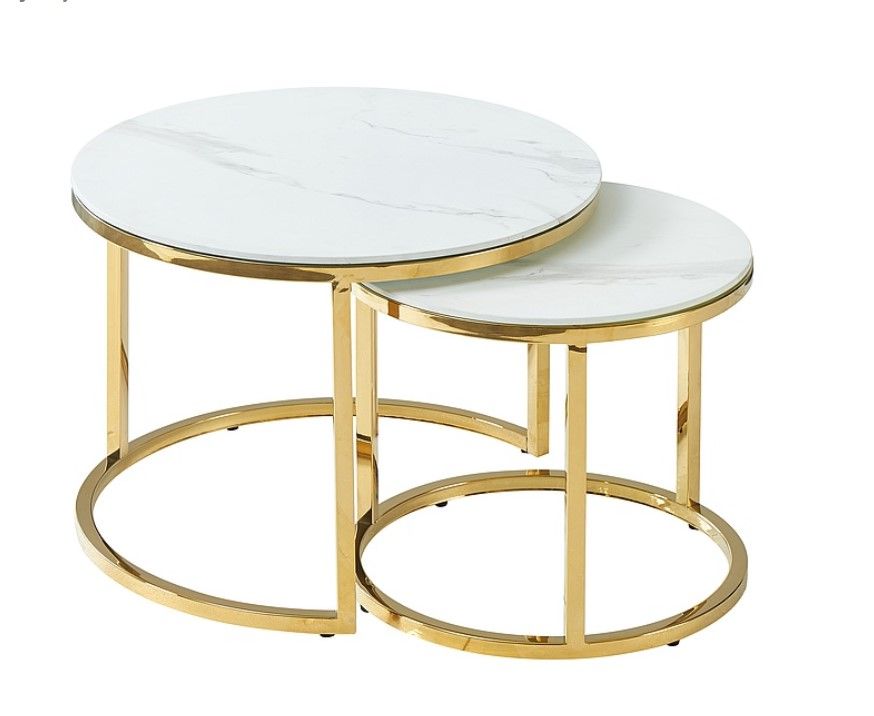 Комплект SIGNAL MUSE II (2 стола журнальных) эффект белого мрамора/золотой