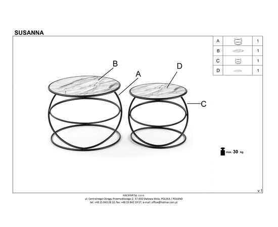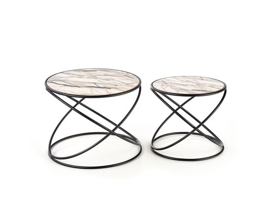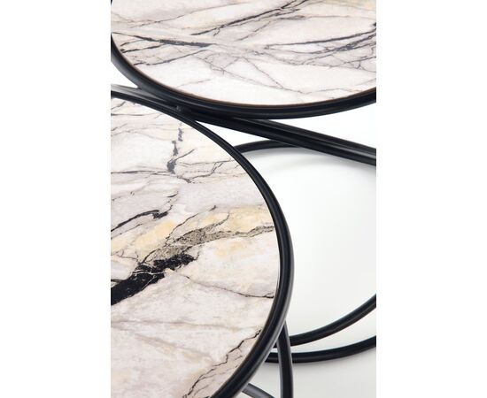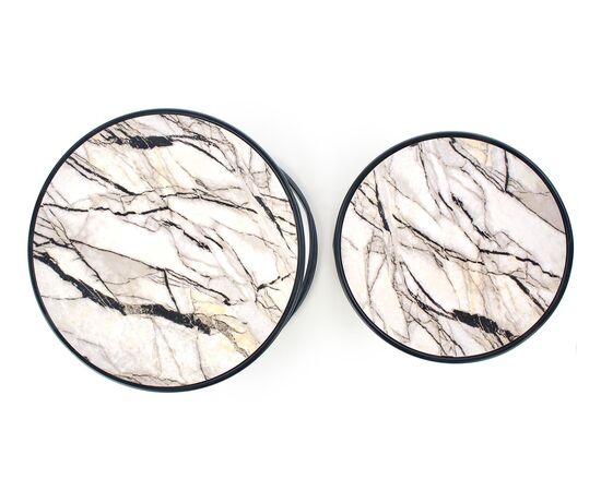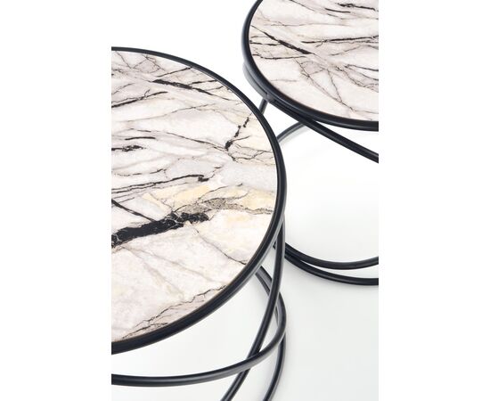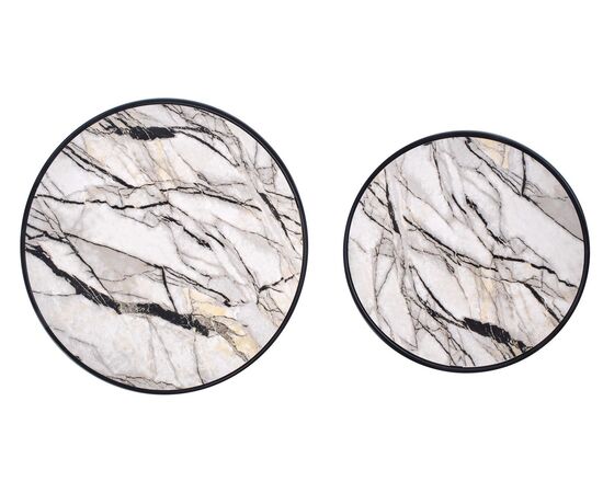 Комплект SUSANNA (2 стола журнальных) белый мрамор/черный, 40/35 и 50/39