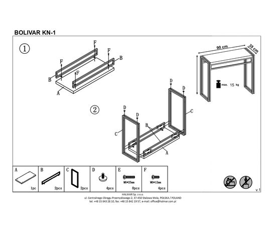 Консоль BOLIVAR KN-1 дуб золотой/черный, 90/35/76