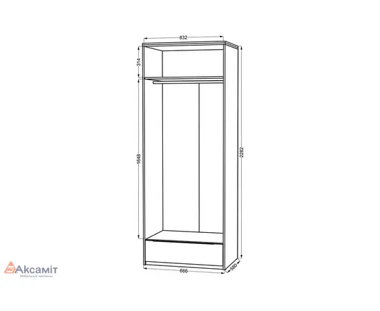 Корпус шкафа 2-х двер Scandica Wilma 1 (белый гладкий шелк)