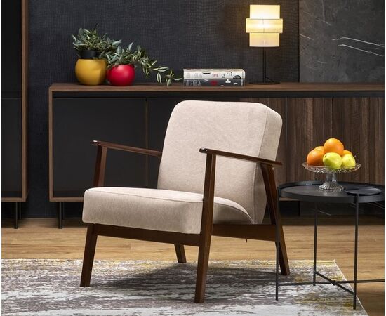 Кресло HALMAR MILANO 1S tap. Castel 15 бежевый/орех