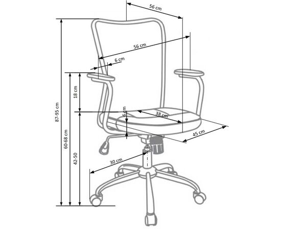 Высота кресла регулируется в диапазоне от 870 до 950 мм.