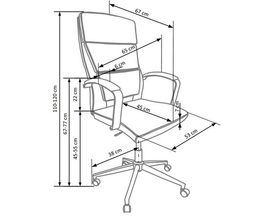 Высота кресла регулируется в диапазоне от 1100 до 1200 мм.