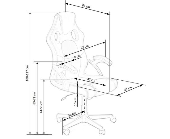 Высота кресла регулируется в диапазоне от 1080 до 1170 мм.