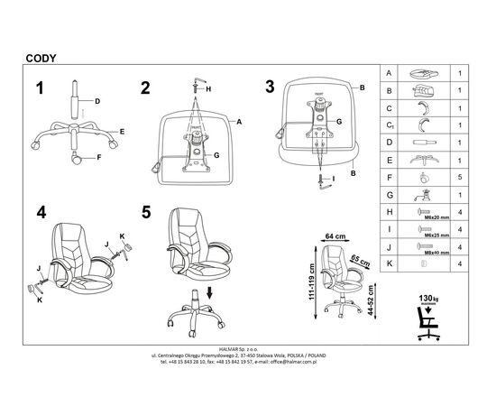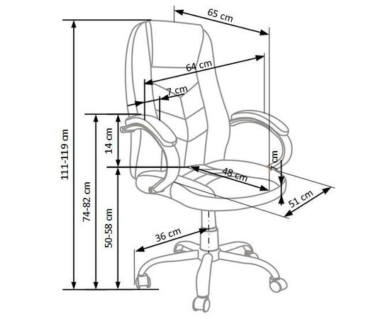 Высота кресла регулируется в диапазоне от 1110 до 1190 мм.