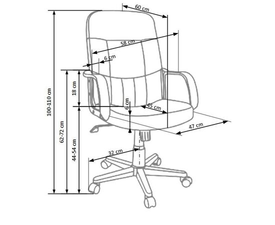 Высота кресла регулируется в диапазоне от 1000 до 1100 мм.