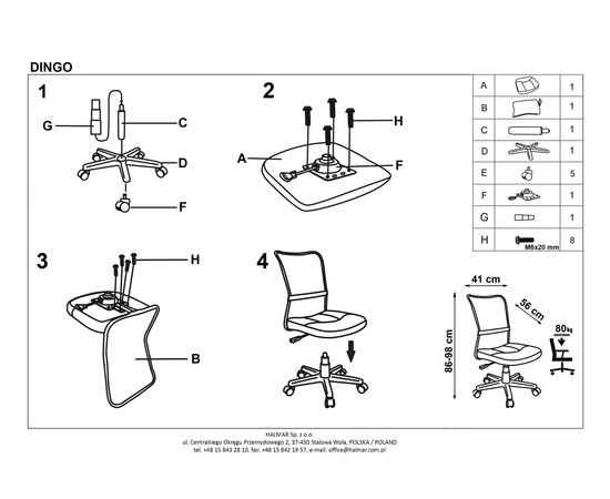 Высота кресла регулируется в диапазоне от 860 до 980 мм.