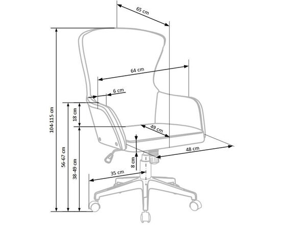 Высота кресла регулируется в диапазоне от 1040 до 1150 мм.