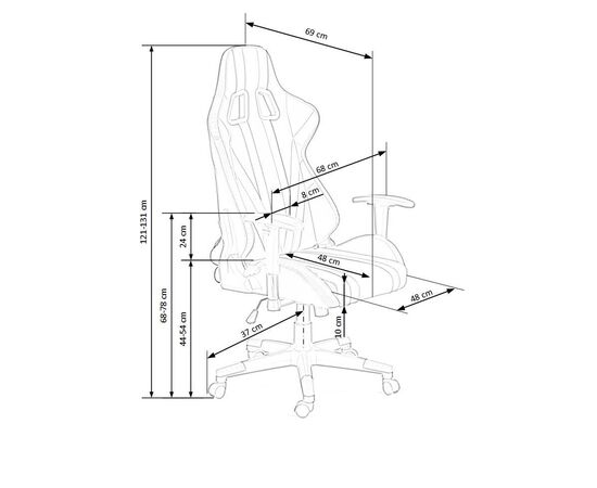 Высота кресла регулируется в диапазоне от 1210 до 1310 мм.