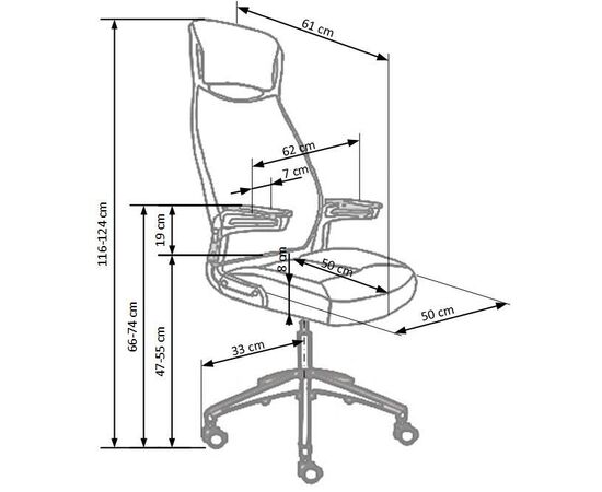 Высота кресла регулируется в диапазоне от 1160 до 1240 мм.