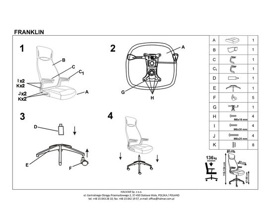 Кресло компьютерное FRANKLIN черно-бело-серый