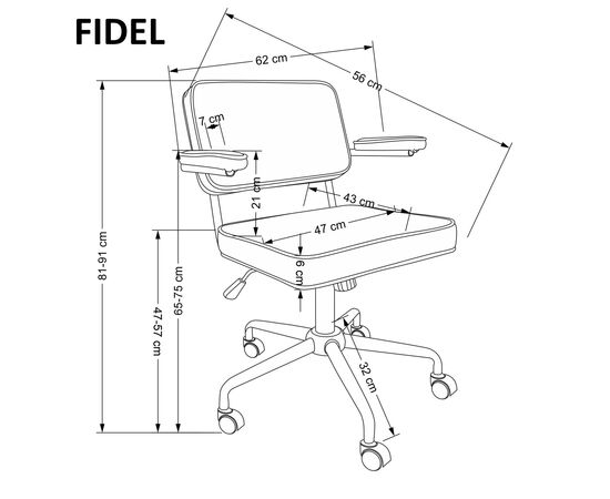 Высота кресла регулируется в диапазоне от 810 до 910 мм.