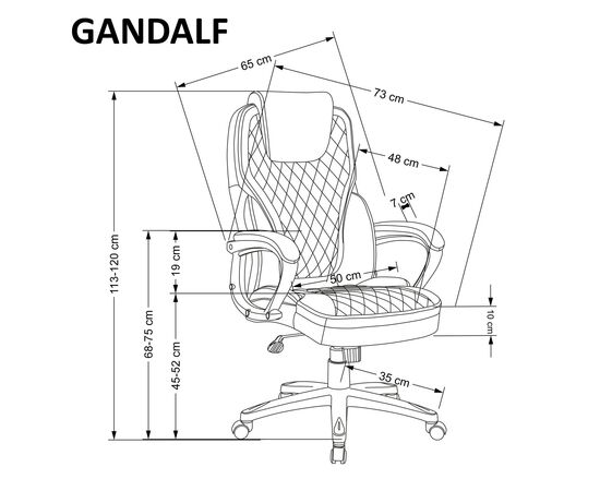 Высота кресла регулируется в диапазоне от 1130 до 1200 мм.