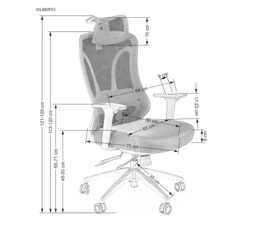 Высота кресла регулируется в диапазоне от 1210 до 1290 мм.