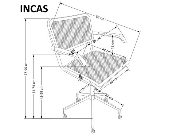 Высота кресла регулируется в диапазоне от 770 до 900 мм.