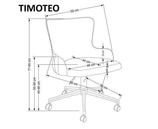 Высота кресла регулируется в диапазоне от 770 до 850 мм.