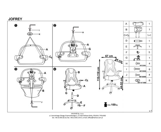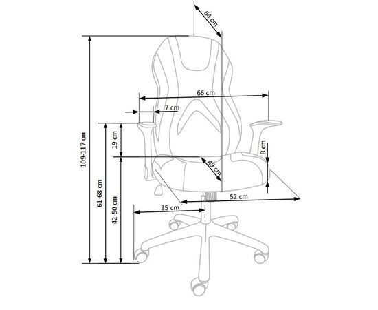 Высота кресла регулируется в диапазоне от 1090 до 1170 мм.