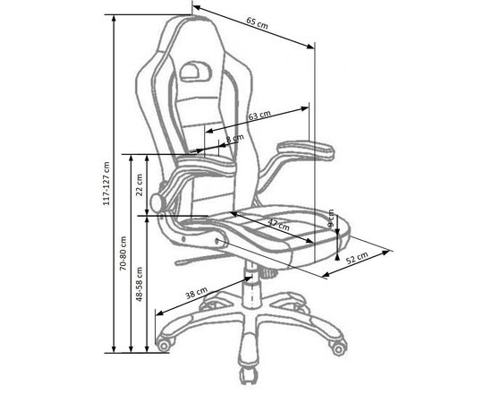 Высота кресла регулируется в диапазоне от 1170 до 1270 мм.