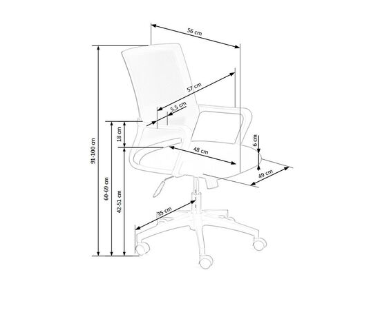 Высота кресла регулируется в диапазоне от 910 до 1000 мм.