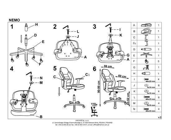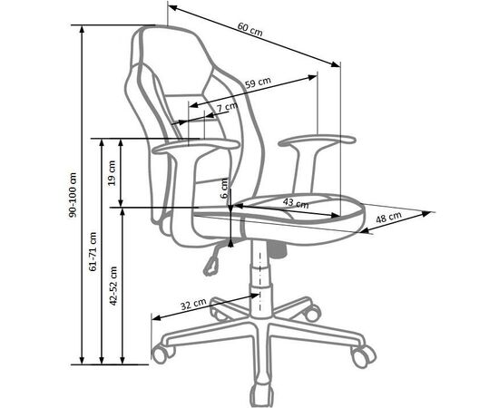 Высота кресла регулируется в диапазоне от 900 до 1000 мм.