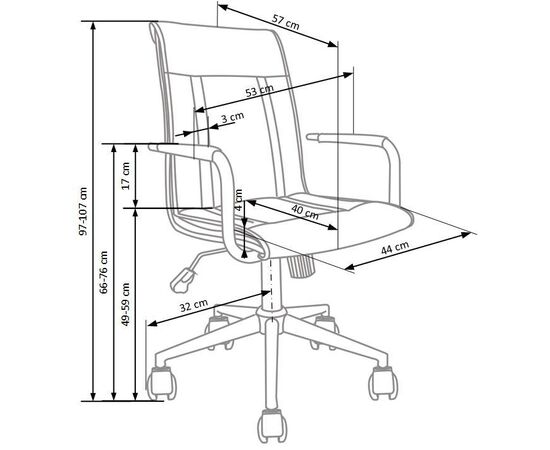 Высота кресла регулируется в диапазоне от 970 до 1070 мм.