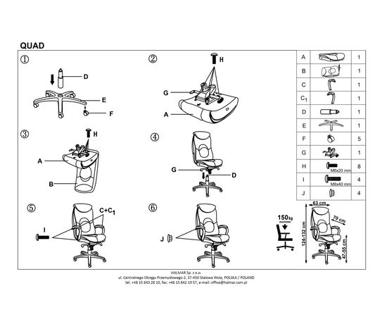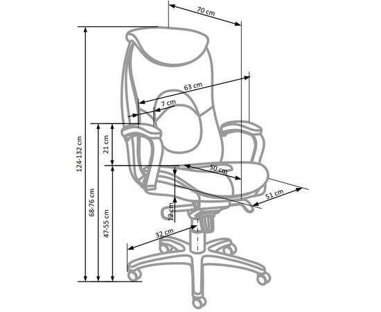 Высота кресла регулируется в диапазоне от 1240 до 1320 мм.