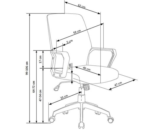 Высота кресла регулируется в диапазоне от 990 до 1060 мм.