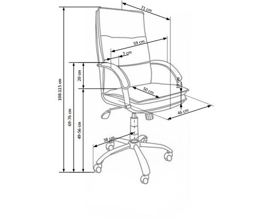 Высота кресла регулируется в диапазоне от 1080 до 1150 мм.