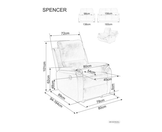 Кресло SIGNAL SPENCER 1 Velvet Bluvel 14 раскладное, серый