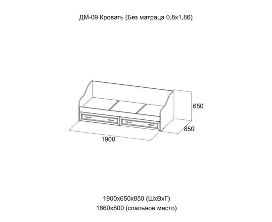 Кровать 0,8*1,86 Вега ДМ-09 сосна карелия