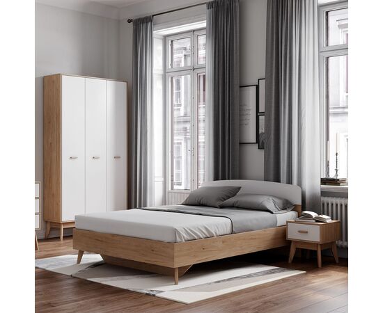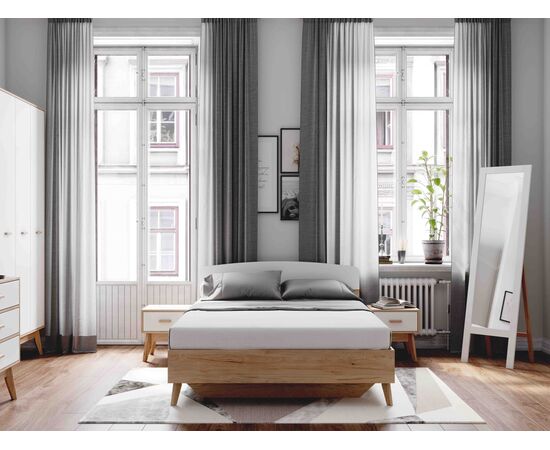 Двуспальная кровать Калгари 1600 (дуб натуральный светлый/белый матовый)